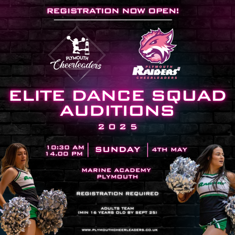 FAQs provided below the audition form. Please take the time to read. For any further information please feel free to email us at info@plymouthcheerleaders.co.uk